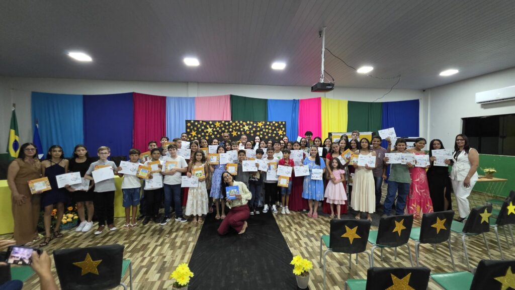 A culminância do projeto aconteceu em grande estilo, com a entrega dos livros e uma noite de autógrafos, reunindo familiares, professores e a comunidade escolar em uma celebração emocionante e cheia de orgulho.